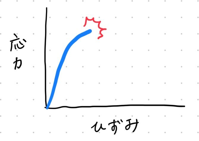 つまり、「やわらかく、すぐに破断する材料」であることがわかる。