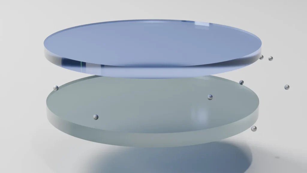 レーザリフトオフは、透明な基板を透過するレーザ光を使ってデバイス層を基板から分離する加工技術です。代表的にはガラスやサファイアなどの透明基板に対して紫外(UV)レーザを裏面から照射し、界面でレーザエネルギーを吸収させて瞬間的に加熱・分解させます。その膨張や分解反応によってデバイス層がキャリア基板から剥離され、極薄のチップやフレキシブルフィルムを高歩留まりで取り出せます。薬液や機械的な力を使わないため欠けや割れが少なく、有機ELディスプレイ、マイクロLED、GaN系パワーデバイスなどの量産に欠かせない非接触・高精度なプロセスとして利用されています。
